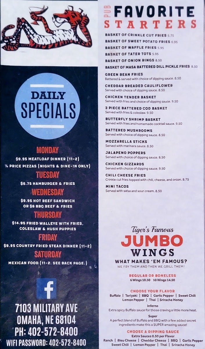 Welcome to Tiger Tom's Pub, a vibrant gem located at 7103 Military Ave, Omaha, NE. This bar and dining spot resonates with energy, serving up an enticing menu that will satisfy your cravings.
